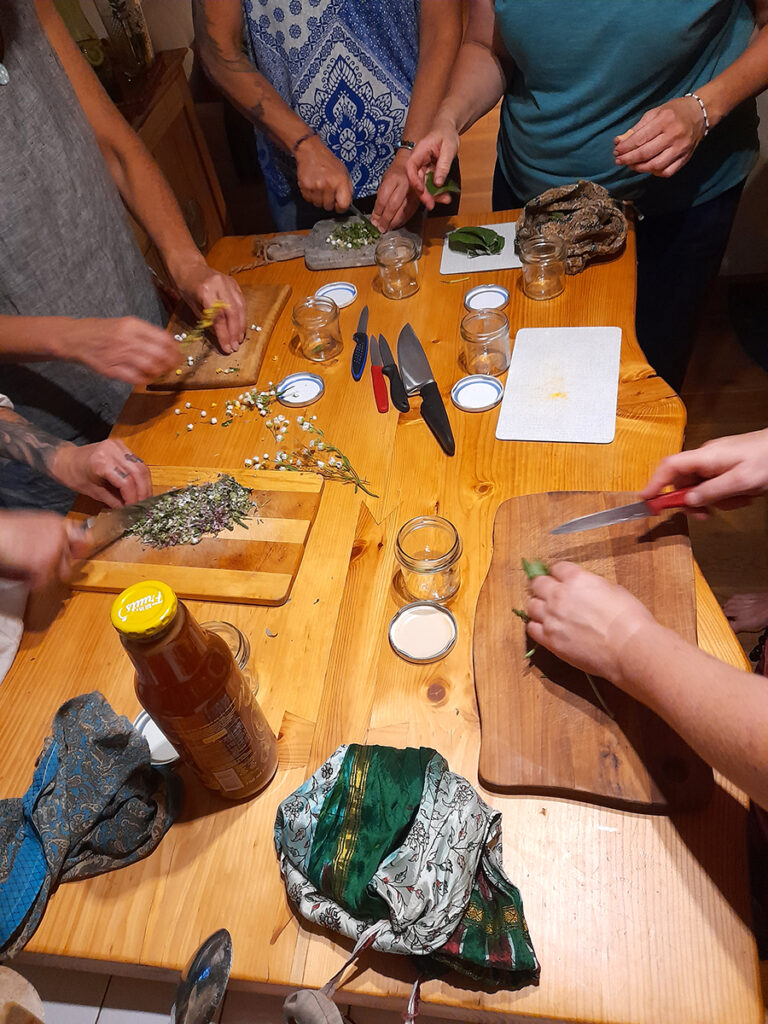• Die Kunst der Herstellung von Tinkturen, Salben, Ölauszügen, Hydrolaten, Oxymel, Bitterpulver, Verreibungen, Räucherwerk und Teemischungen